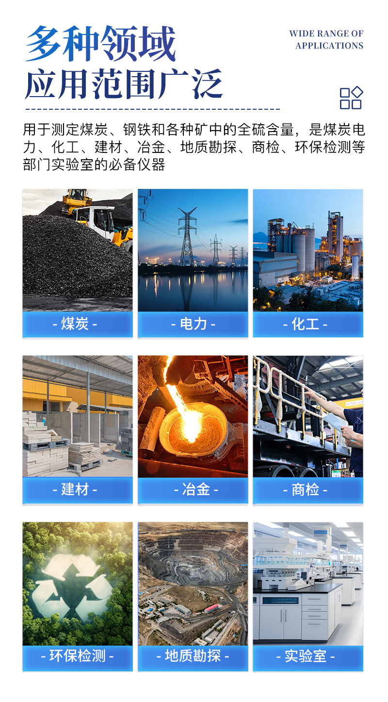 本公司生產的系列微機全自動定硫儀,主要用于測定煤炭、鋼鐵和各種礦中的全硫含量,是煤炭、電力、化工、建材、冶金、地質勘探、商檢、環保檢測等部門實驗室的優選必備儀器。