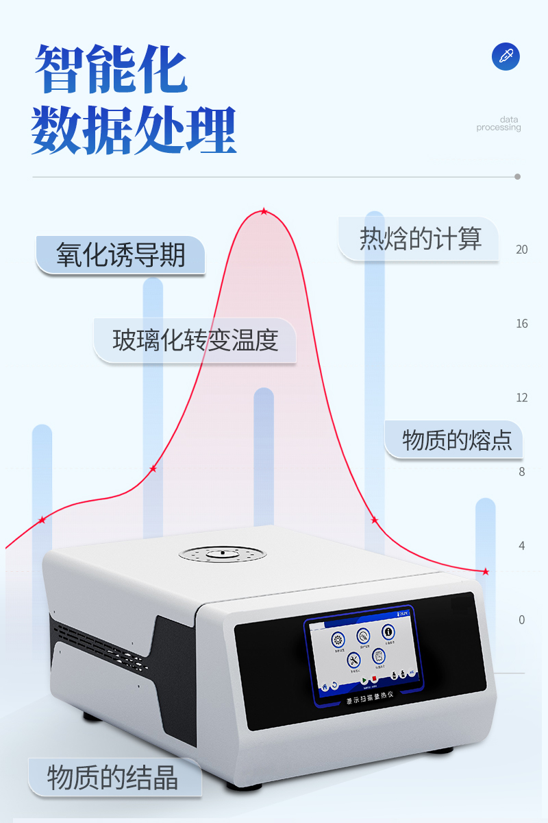 12、儀器采用USB雙向通訊,支持自恢復(fù)連接,軟件智能化設(shè)計,具有基線的扣除功能,實(shí)驗(yàn)過程自動繪圖,智能化實(shí)現(xiàn)各種數(shù)據(jù)的處理,如熱焓的計算、玻璃化轉(zhuǎn)變溫度、氧化誘導(dǎo)期、物質(zhì)的熔點(diǎn)及結(jié)晶等等。