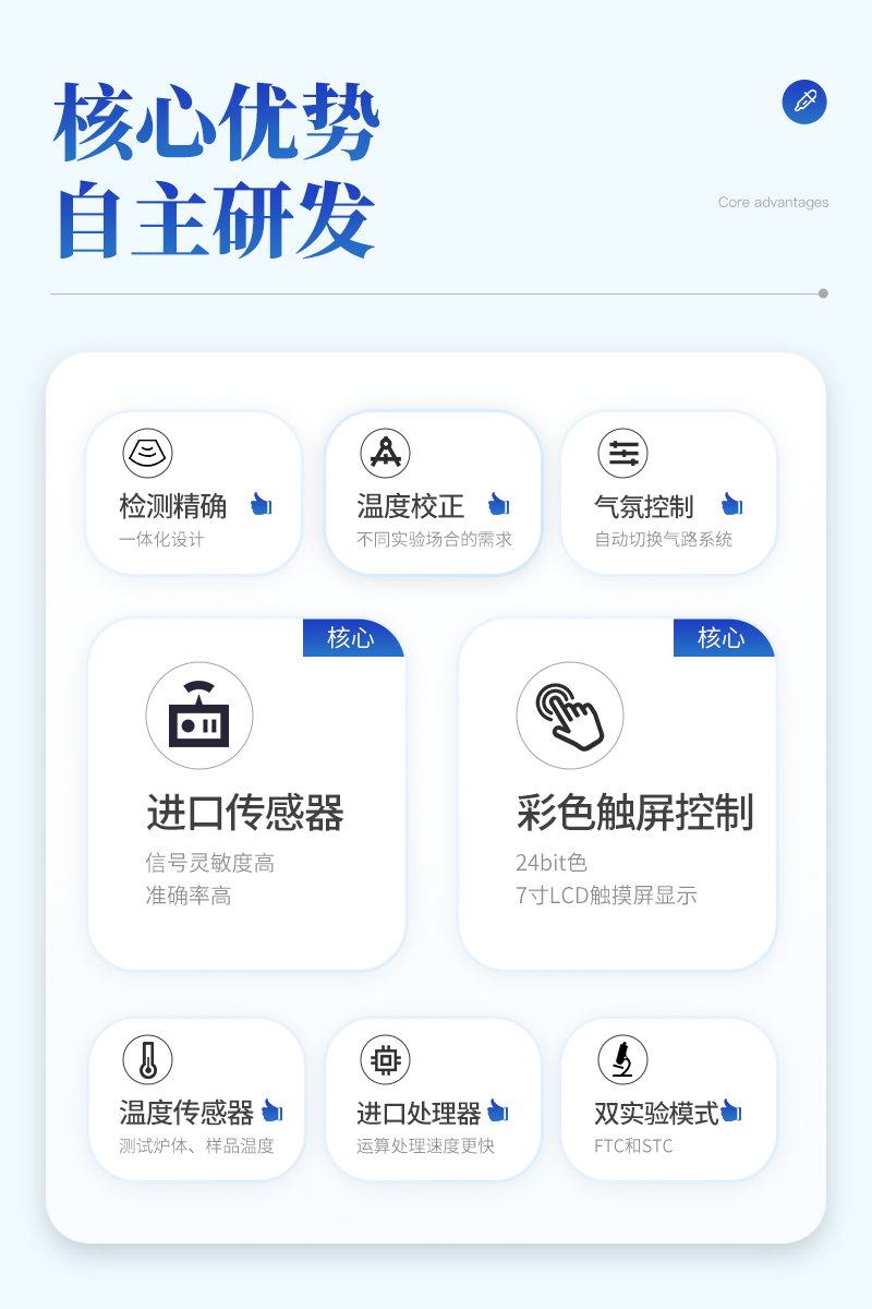 6、具有FTC和STC兩種實(shí)驗(yàn)?zāi)J娇蛇x,控溫更加友好靈活,可以滿足不同應(yīng)用場景不同實(shí)驗(yàn)的需求,對實(shí)驗(yàn)過程溫度的控制更加**,對傳感器信號的解析更加高效。
